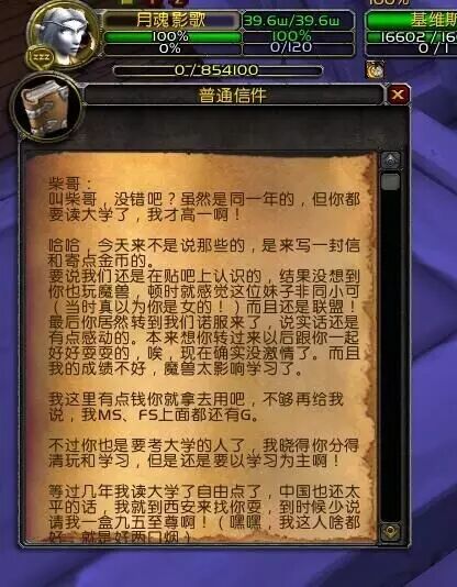 时间来到大二上学期,在我的安利下,我的室友韩昱坤,跟隔壁宿舍的夏一哲,也开始玩起了魔兽。一个玩的是人类猎人,另一个玩的是狼人法师。也是没过多久就AFK了,这个世界太大了,我又很忙,实在没有精力去探索了。夏一哲是这么说的。